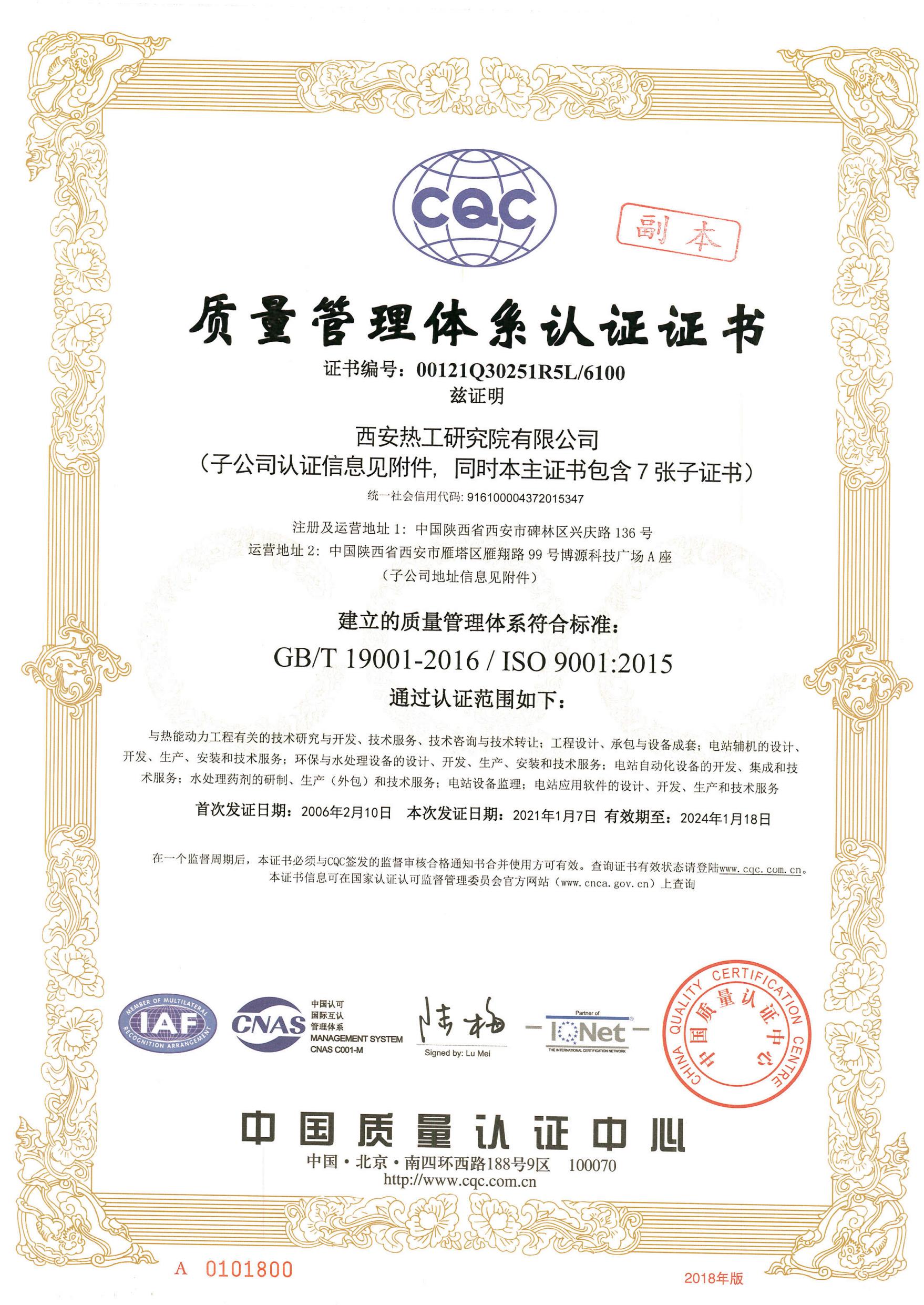 ?質(zhì)量管理體系認(rèn)證證書