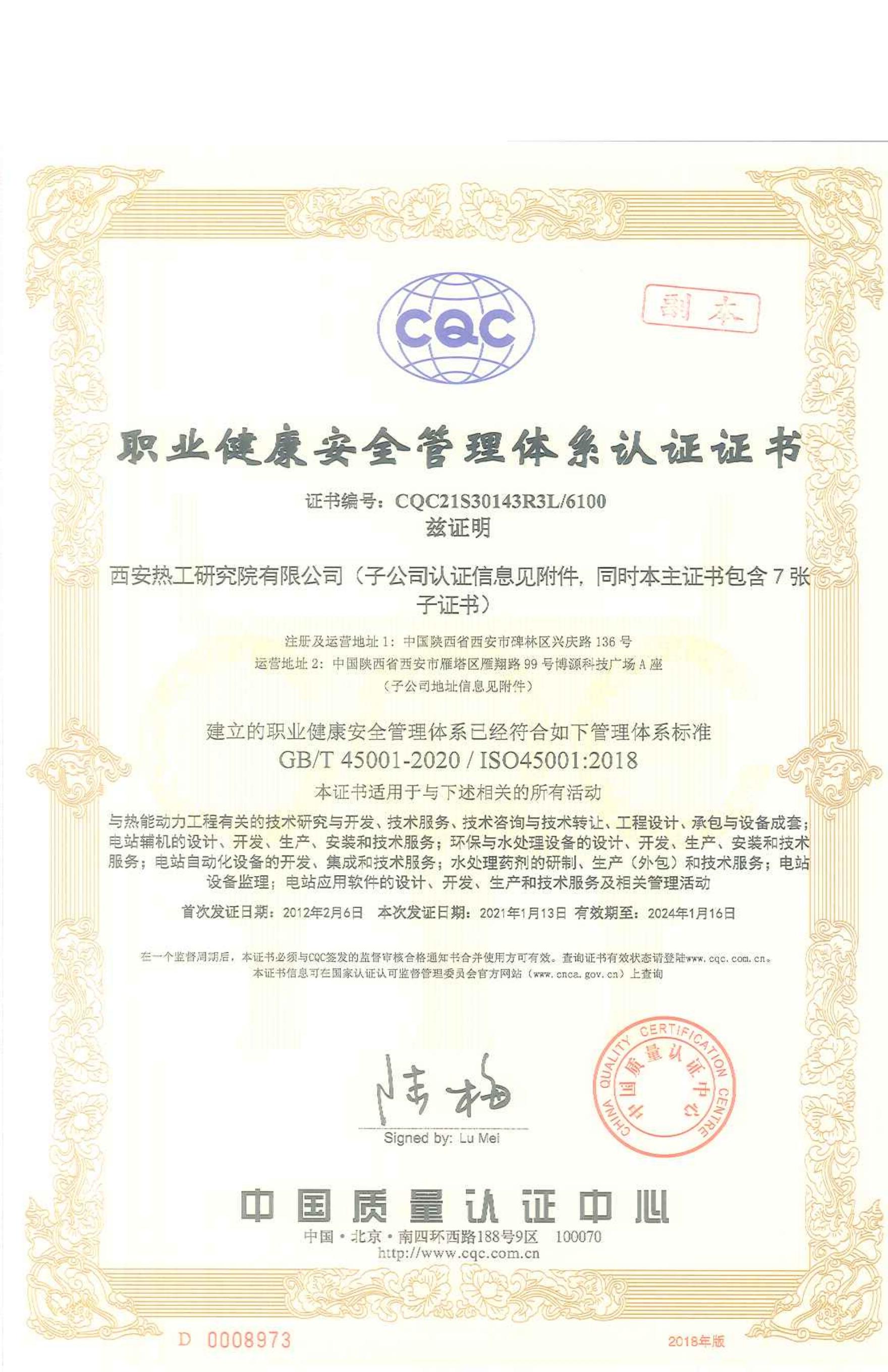 ?職業(yè)健康安全管理體系認(rèn)證證書