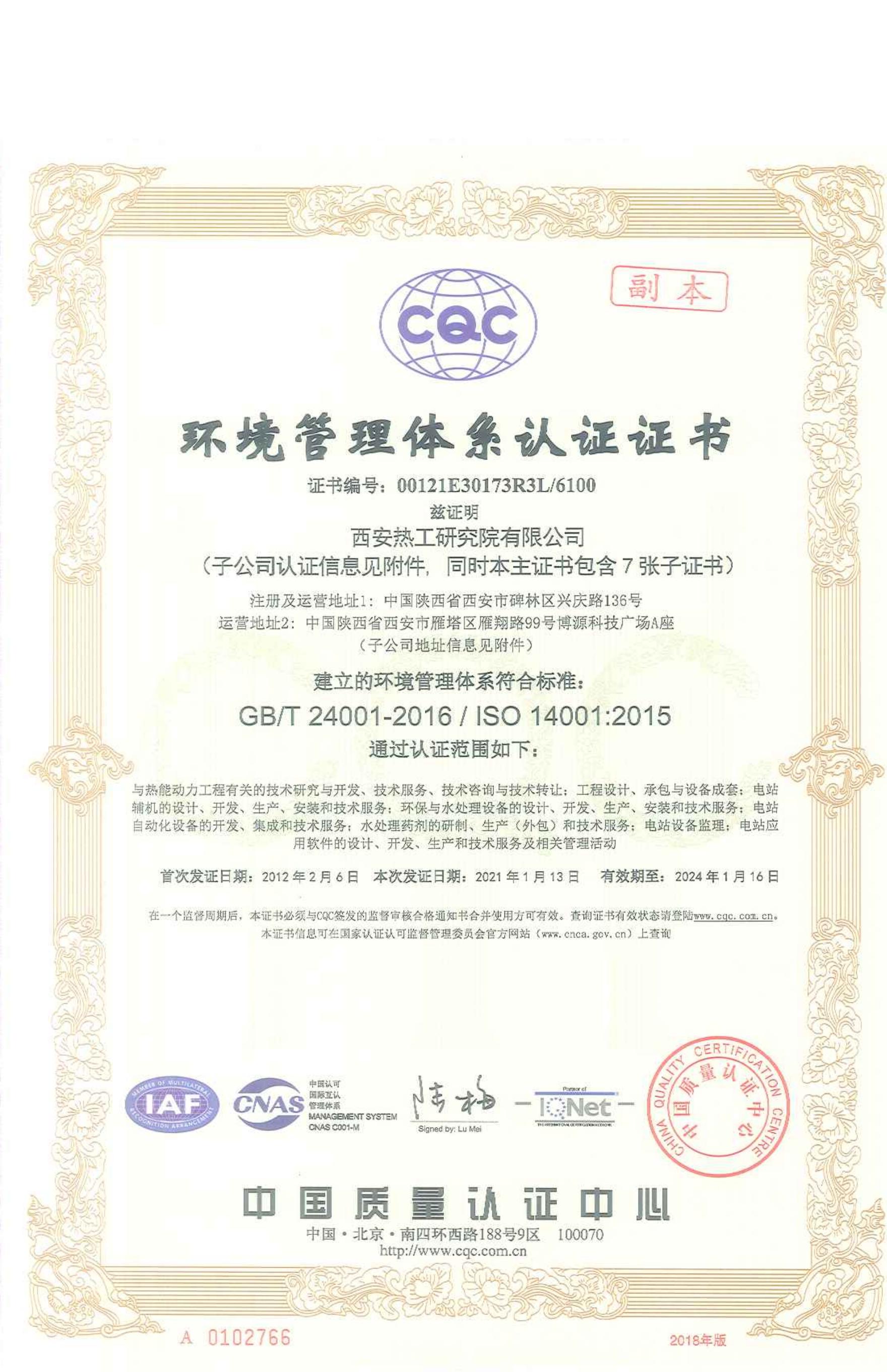 ?環(huán)境管理體系認(rèn)證證書