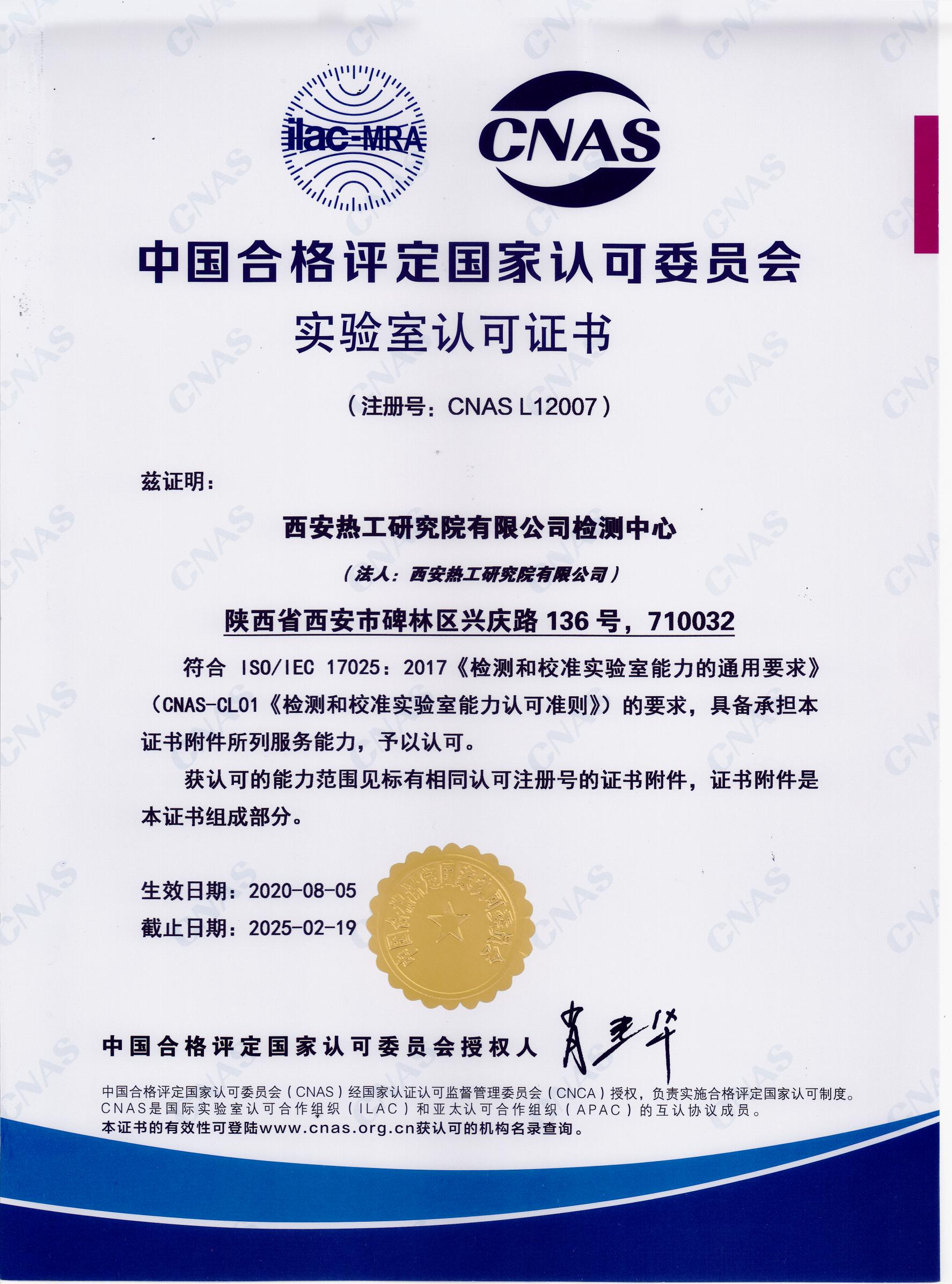 ?電力工業(yè)熱力發(fā)電設(shè)備及材料質(zhì)量檢驗(yàn)測試中心檢驗(yàn)檢測機(jī)構(gòu)資質(zhì)認(rèn)定證書